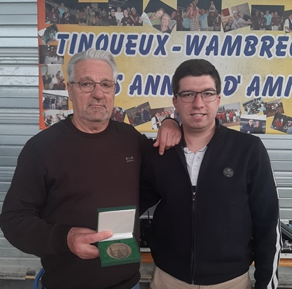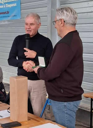 Dominique MARTIN, président du club depuis 20 ans passe le relais à Thomas FONTAINE élu pour 3 ans, lors de l'assemblée |