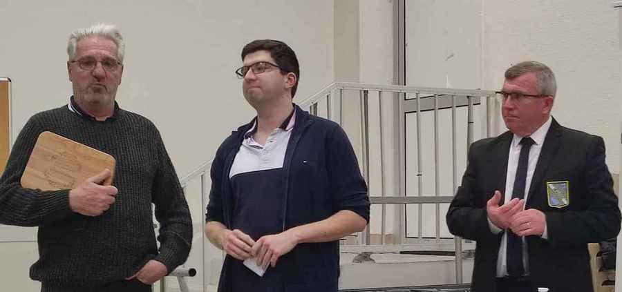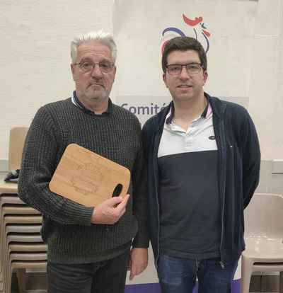 Thomas FONTAINE, le nouveau président du Cochonnet, a officialisé la décision du Conseil d'administration du club, de nommer Dominique MARTIN président d'honneur, en remerciement de son dévouement pour le club. |